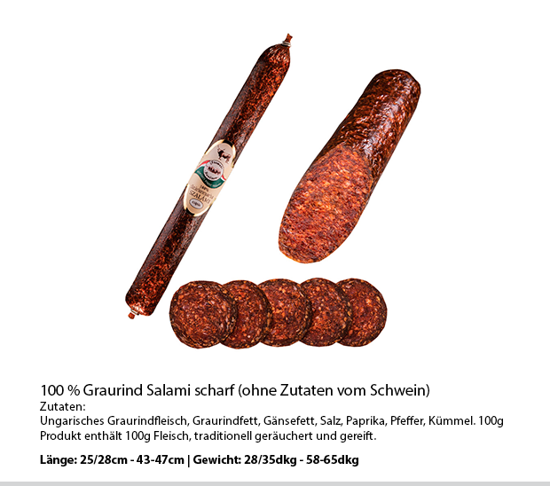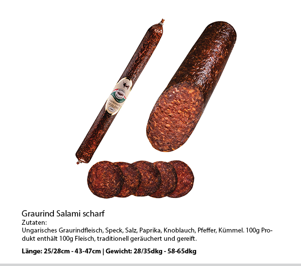 Im Szomor Fleischbetrieb werden fast 30 Sorten Salami, Wurst und Fleischprodukte in Handarbeit gefertigt. Die Salami und Wurstsorten reifen 60-120 Tage lang und sind frei von Reifebeschleunigern. Diese Produkte verdanken ihren einzigartigen Geschmack dieser traditionellen Herstellungsweise, sowie den Graurindern aus eigener Haltung.